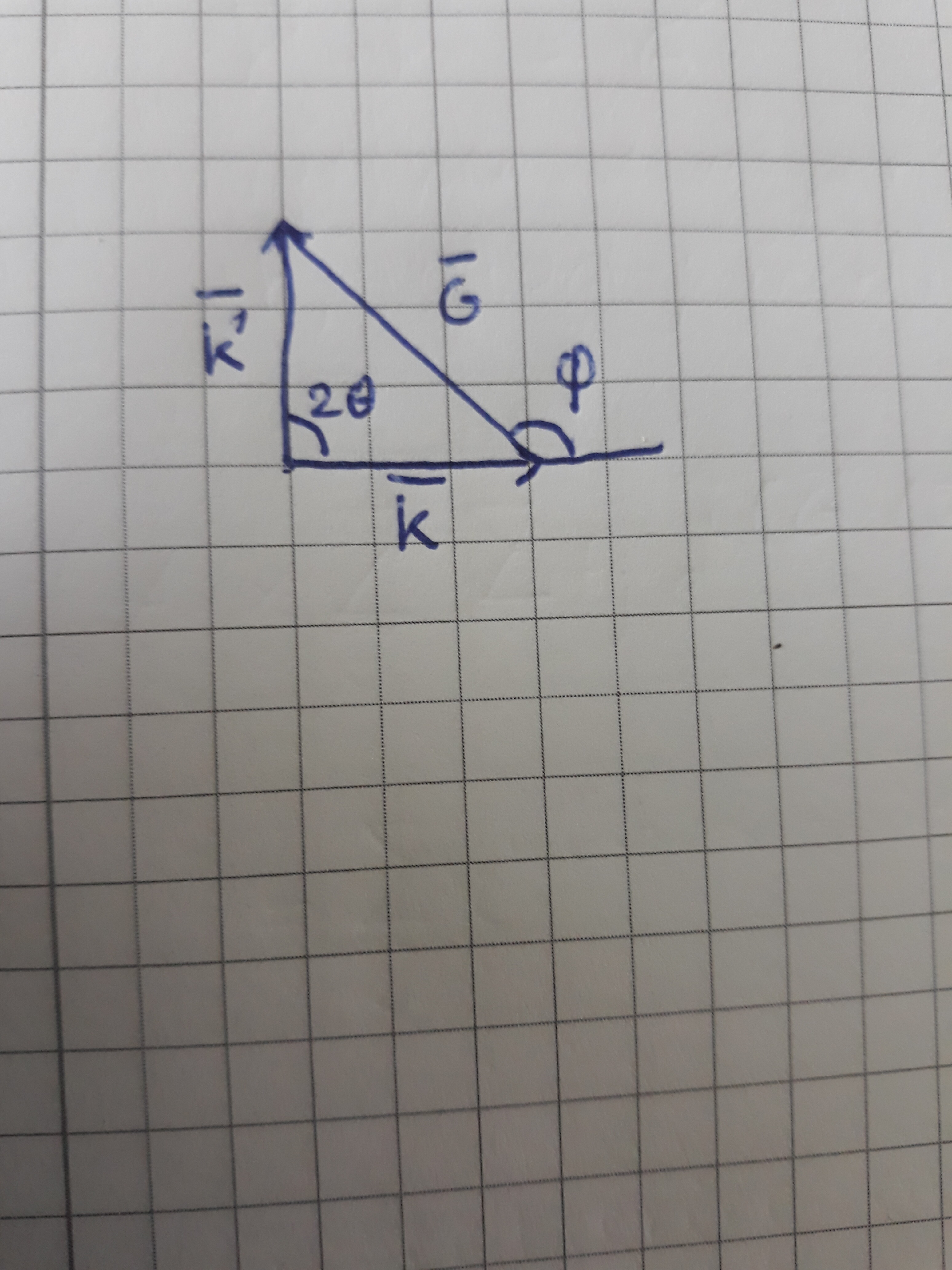 the minus sign disappears, so I think in fact \phi is the angle between -\mathbf{k} and \mathbf{G} (which is the acute angle next to the angle \phi in your drawing). I guess it should maybe be corrected to - \mathbf{k} \cdot \mathbf{G} = |\mathbf{k}| |\mathbf{G}| \cos(\phi) ?