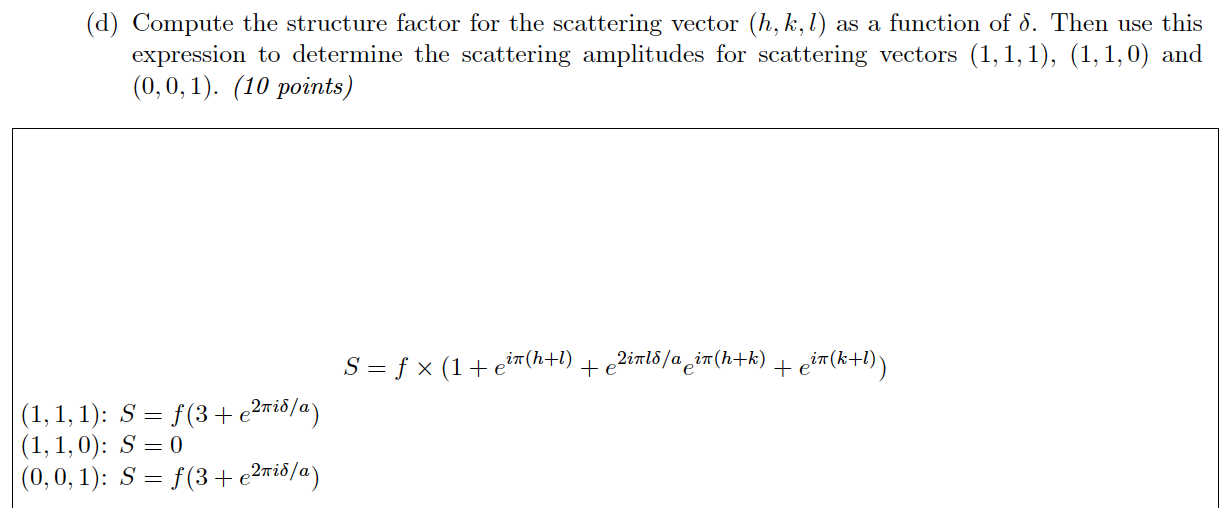 From there it is then concluded that the structure factor is computed as a function of delta as follows: