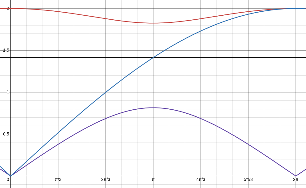 This can be seen when you plot the dispersion relation and \omega=\sqrt{\frac{\kappa}{\mu}}, the horizontal line is not exactly in the middle.