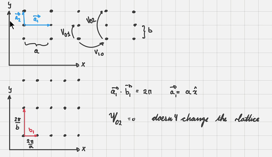 Yeah i got the same solution, however you switch V01 en V02 in your drawing (I think). I am assuming you are doing the 2020 tenta, in this case it’s a little different as The question explicity asks for the “the reciprocal lattice”.